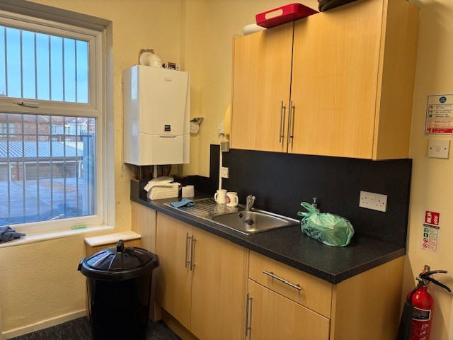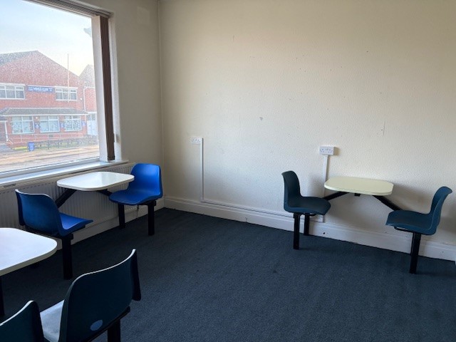 First Floor: Ladies and gents toilets; kitchen/staffroom 2.7m x 3.2m; front room 3.6m x 3.5m; front room 4m x 4.7m.
